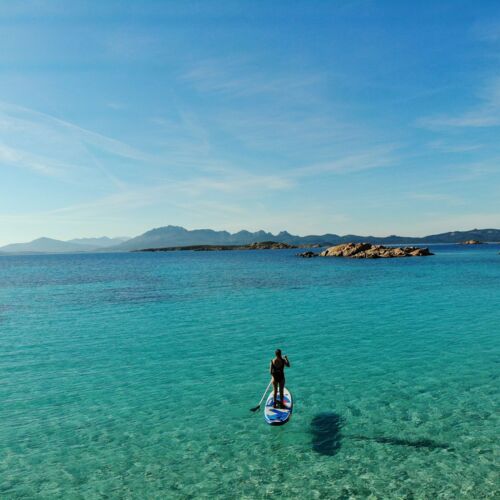 Ob mit geliehenem Kayak, SUP-Board oder eigenem Equipment, die Buchten und Strände Sardiniens laden zu einer Erkundungstour mit einem SUP oder dem Kayak ein. Kristallklares, warmes Wasser und kaum Wellengang, sorgen für perfekte Bedingungen für einen Ausflug. Außerdem besteht bei der nahegelegenen Fischzucht eine sehr hohe Wahrscheinlichkeit, Delfine in freier Natur zu erleben.
